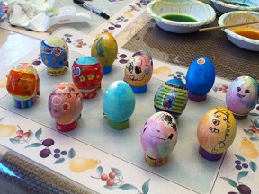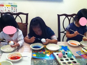 別の日にはお友達のおうちで卵ペイントをやりました。