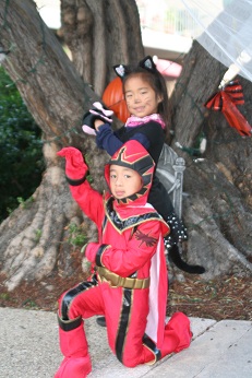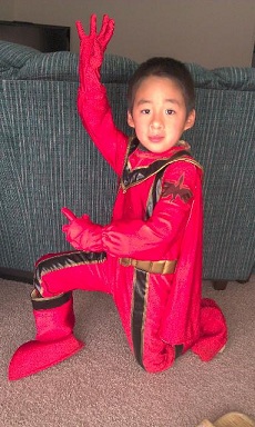 この日、タイミングが良いことに、別のママ友が航ちゃんが気に入ってくれるだろうと「マジレンジャー」のコスチュームを貸してくれた。