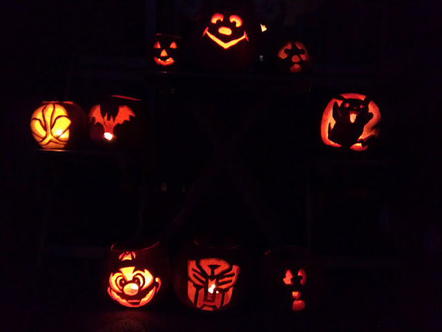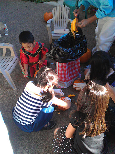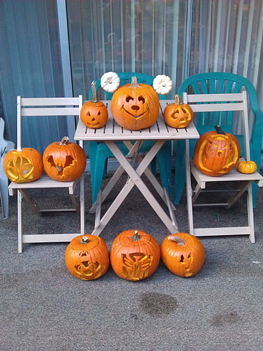 ポットラックのランチを食べて、みんなでかぼちゃを彫りました。