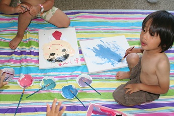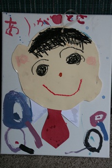 子供には本格的にキャンバスを使ってお父さんの絵を書かせました。
