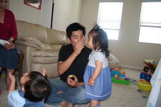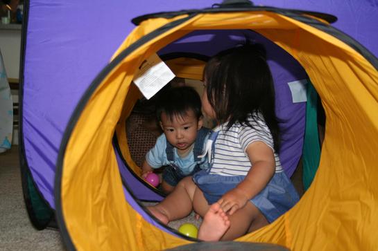 をするとのことで、お呼ばれに行ってきました。KAIくんに会うのは3月末以来だから約1ヵ月半ぶり。時々スカイプで映像は見ているんだけど、そのたびに里花が興奮するので、久しぶりに一緒に遊ばせるのが楽しみでもあり、デカイ図体でスリムなKAIくんをぶっ飛ばしたりしないか心配でもあり・・・。