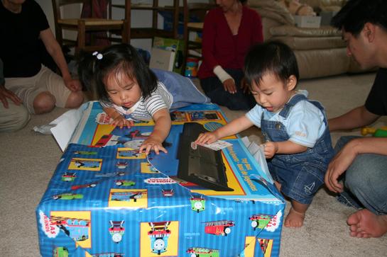 まで用意してもらって・・・。プレゼントタイムも横から割り込み、ラッピングを破りまくる。