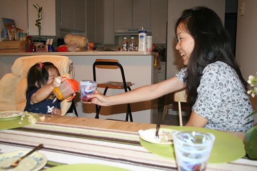 最近はいろいろとコミュニケーションが取れるようになってきて、ママと「乾杯」してくれました。