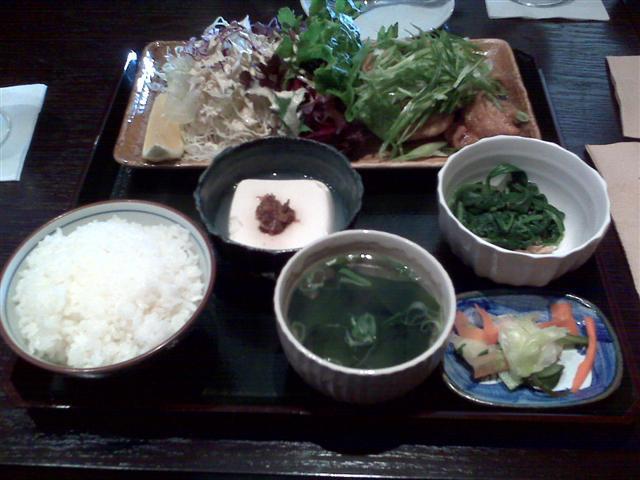 定食は普通のご飯だったけど、煮浸し、冷奴、お漬物は同様、ワカメスープ付
