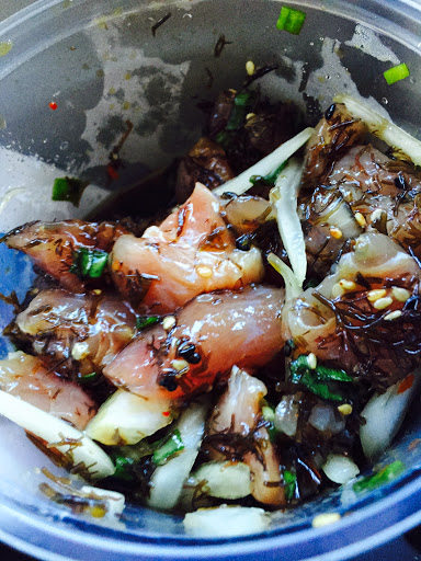 お刺身をごま油やハワイアンソルトであえたお惣菜。