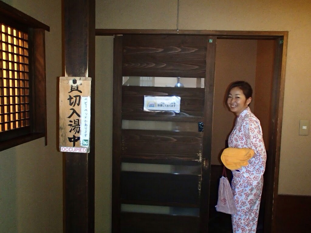予約制でなく、入り口前の看板を「入浴中」とひっくり返すだけ。