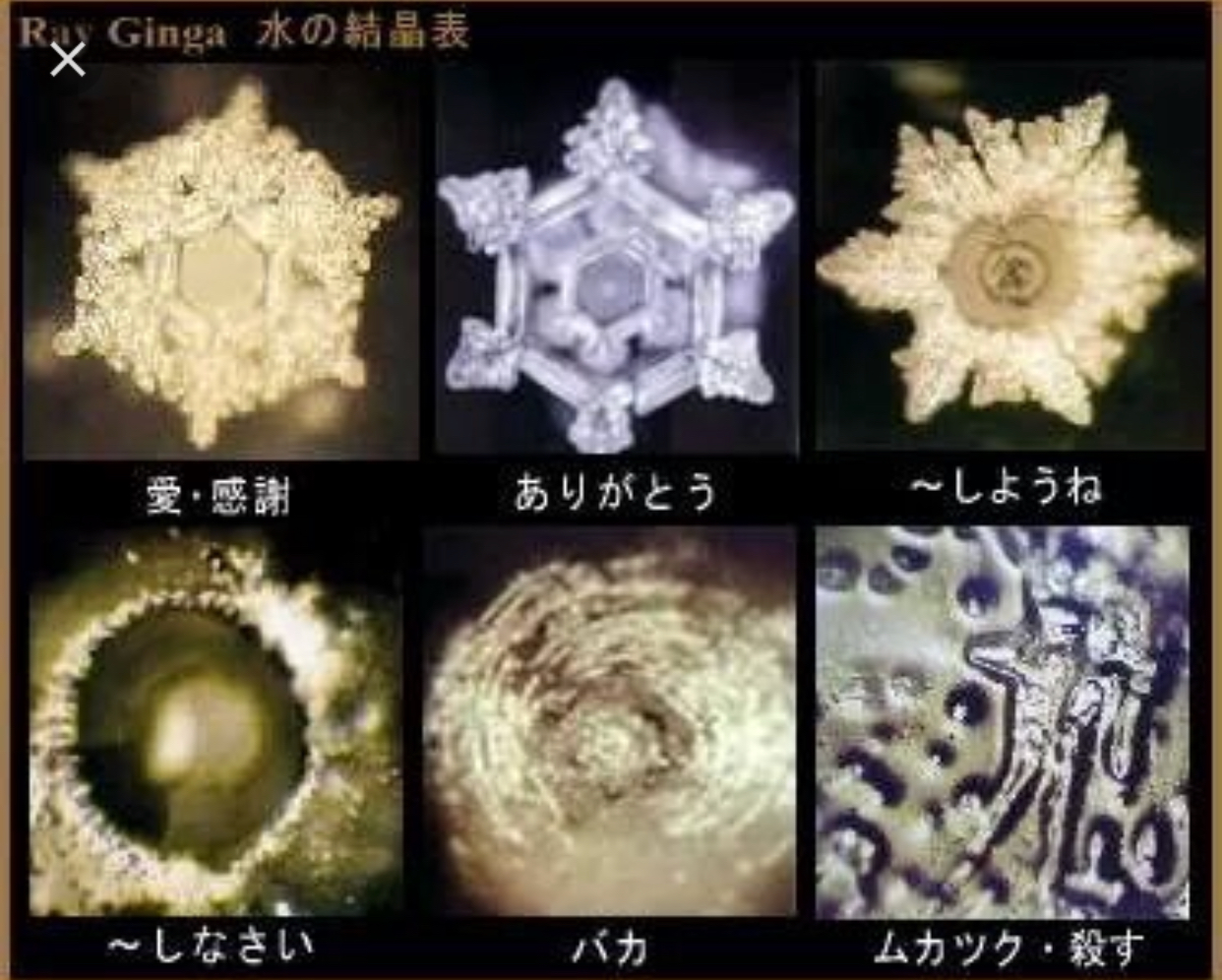 水の結晶も雪のようにキレイな六角形をしているのですが、汚れた水や気の悪い水の結晶はその形が崩れています。