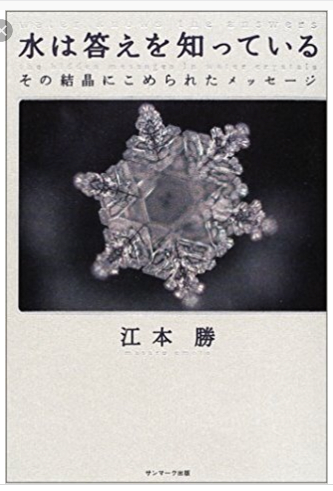 本の一部。水への語りかけやその言葉を見せた時の結晶の変化。