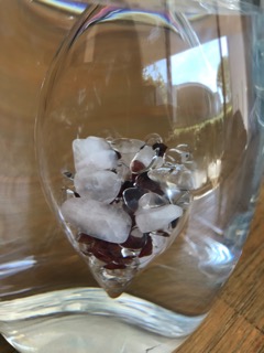 また昨年シャスタで買った六角柱の水晶は、モスブレーの水につかった後、石の中の虹が増えました。キラキラと一段と美しく輝いています。