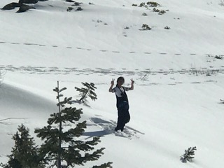 ラッキーな事に雪ががっつり積もっているので、先にトレイルした人の足跡が残ってる!
